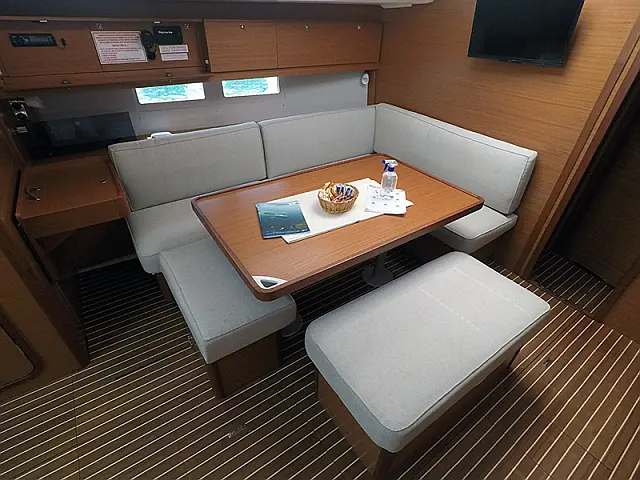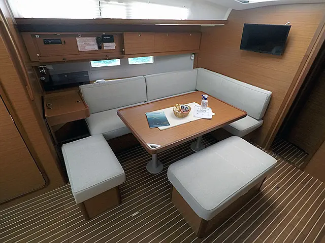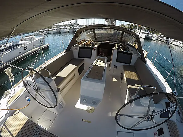 Great Dufour model, fully equipped, with 4 double cabins and 4 toilets, heating, a large cockpit with a bathing platform, and also with a fridge, grill, and sink in the cockpit. Taller mast with full batten main sail, 108% genoa, Full comfort, and high performance.