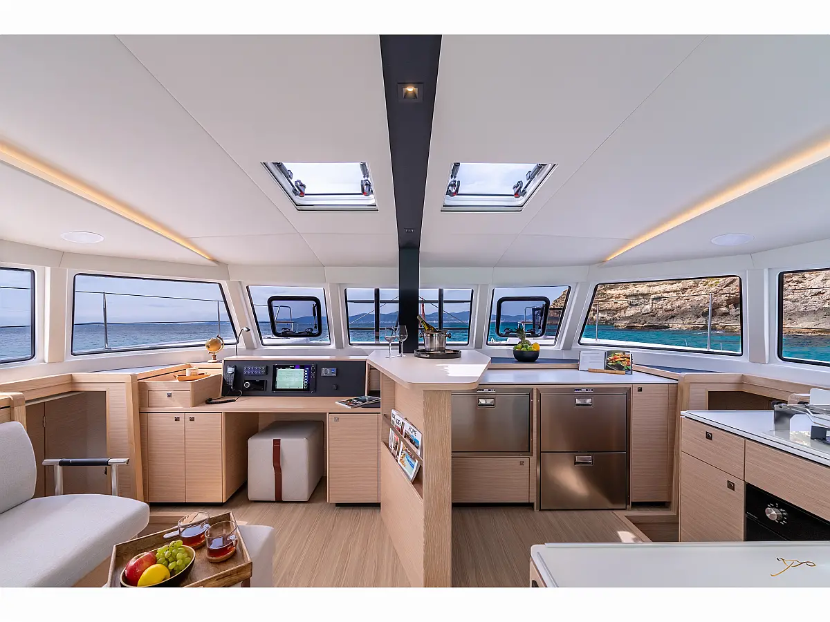 Air condition, Heating, Bimini, Refrigerator, Electric winches, Generator, Solar Panels, Outboard engine, Water maker, Electric toilet, Cockpit speakers