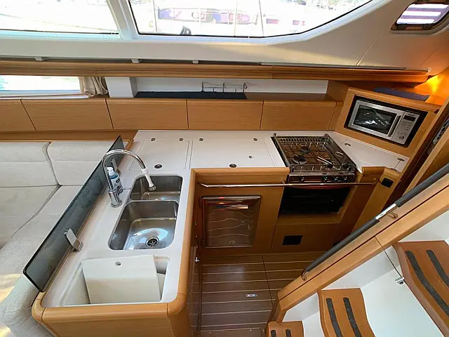 Cockpit speakers, Cockpit cushions, Refrigerator, Teak Cockpit, Heating, Holding tank, Sprayhood, Dinghy, Bimini, Electric winches, Electric toilet, Generator, Solar Panels, Inverter