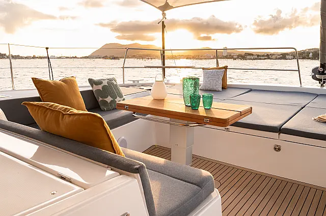 Cockpit cushions, Electric toilet, Solar Panels, Inverter, Cockpit speakers, Ice maker, Air condition, Dinghy, Electric winches