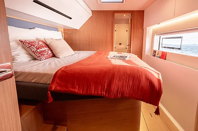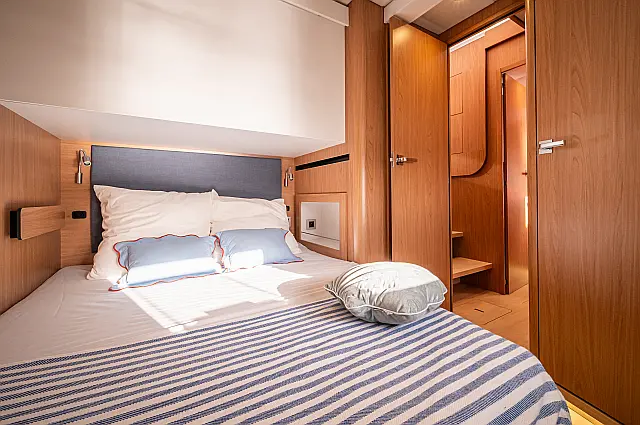 5 (1 master suite, 4 double cabins, ensuite WCs; CREW: 2 front peaks + WC)